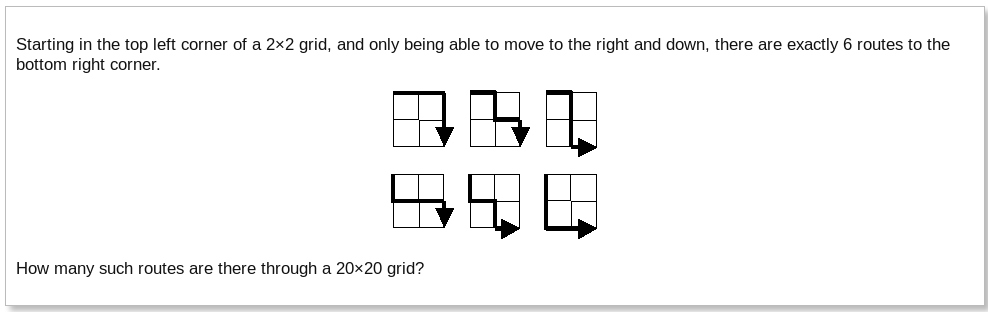 And for a 20×20 grid the answer becomes